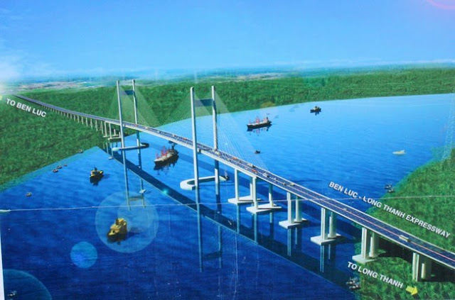 Cầu dài 3,4 km với 4 làn xe, tĩnh thông thuyền 55 m, nối huyện đảo Cần Giờ với Nhà Bè (TP HCM) có tổng mức đầu tư hơn 5.300 tỷ đồng.